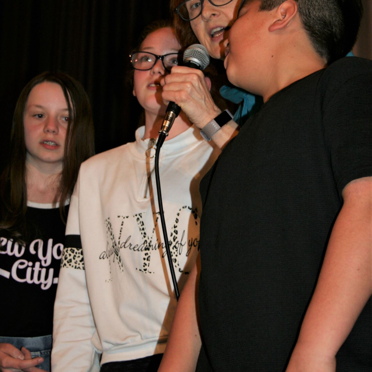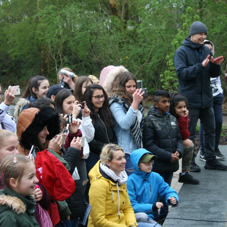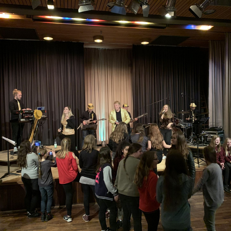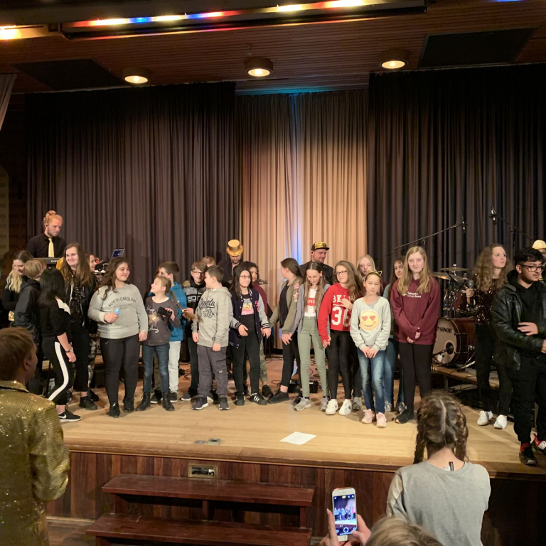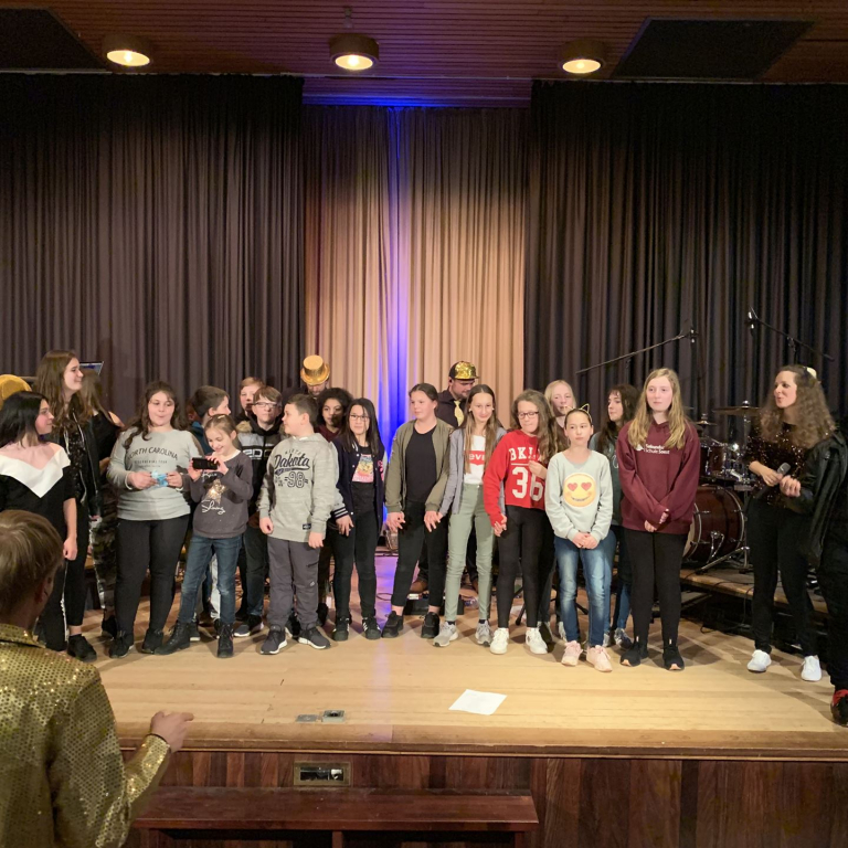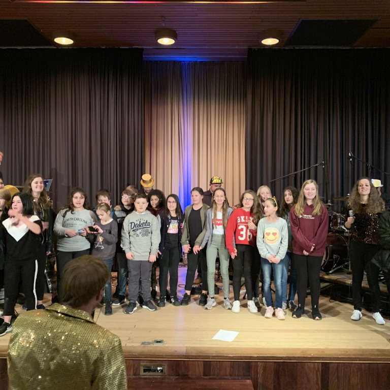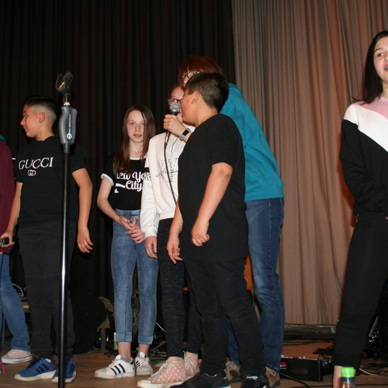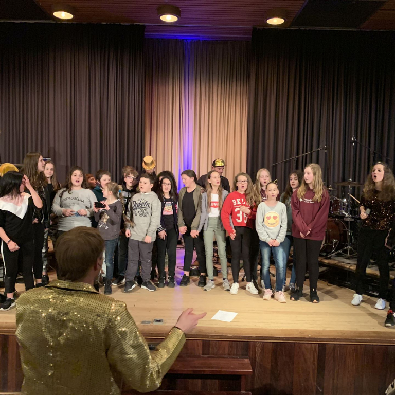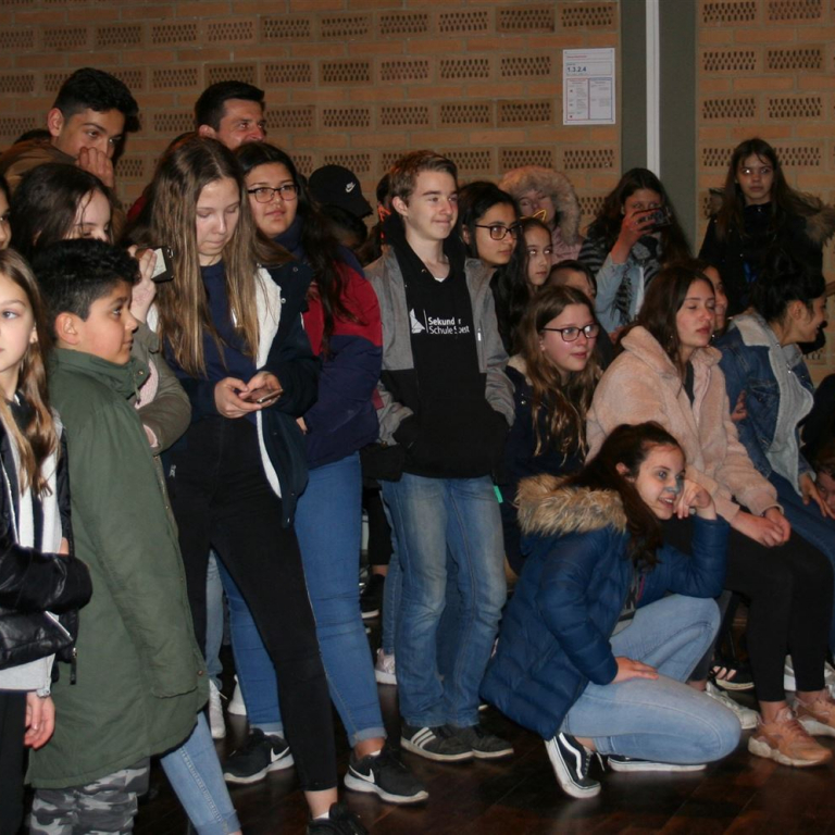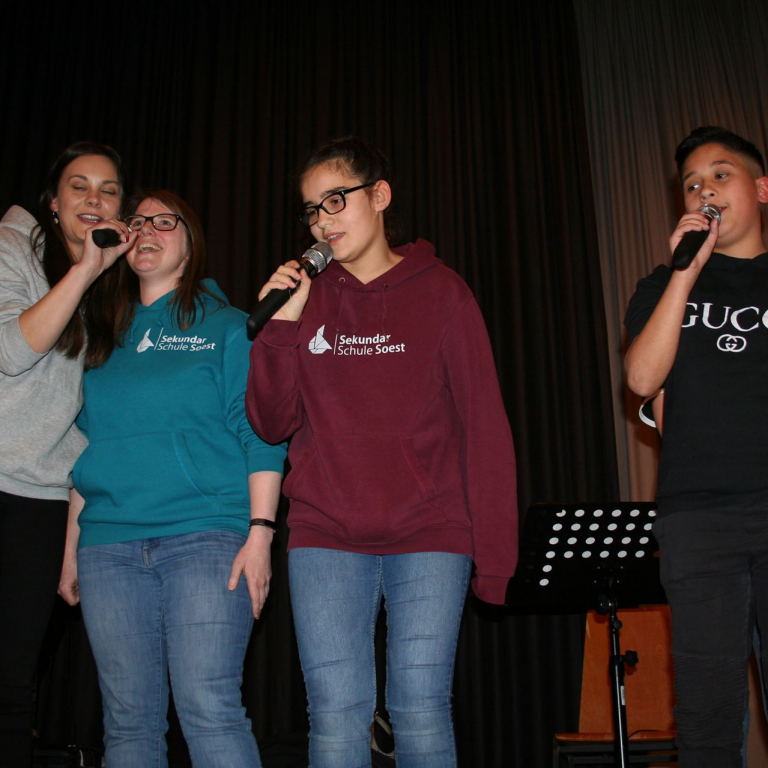 Als quasi Weltpremiere wurde anschließend der neue Schulsong der Sekundarschule live gesungen. Gänsehaut und donnernder Applaus waren garantiert. Neben den singenden Schüler*Innen waren vor allem die Männer im Hintergrund, die für Ihren Einsatz verdientermaßen mit Applaus belohnt wurden. Die Lehrer Michael Stewen und Moritz Mann haben über viele Wochen Zeit in die Proben gesteckt. Bescheiden aber unverzichtbar in dem Prozess war Johannes Pukrop, der als Songwriter die Ideen der Schüler*Innen aufgriff und bei den letzten Proben stets engagiert als Künstler und Motivator anwesend war.