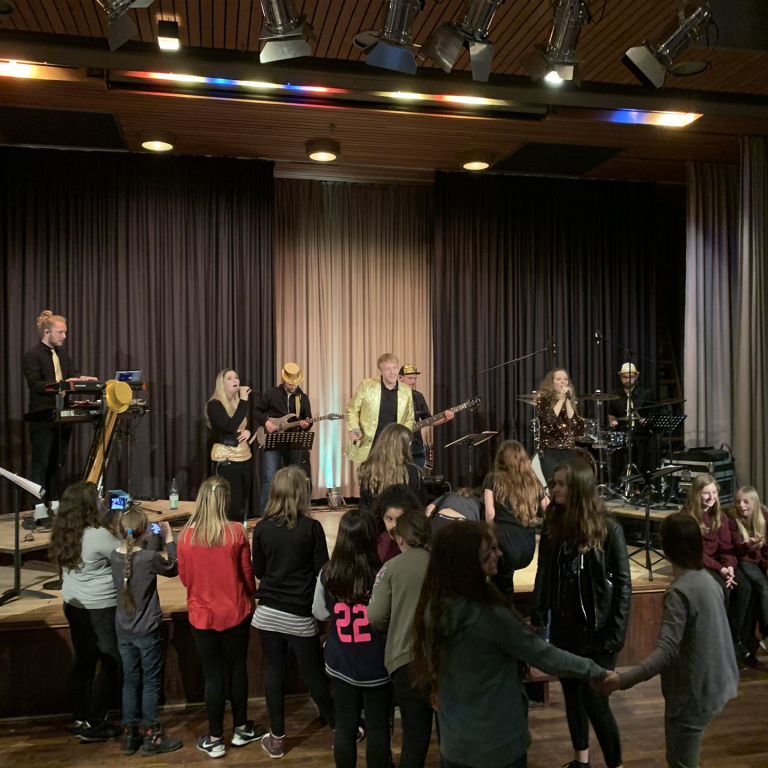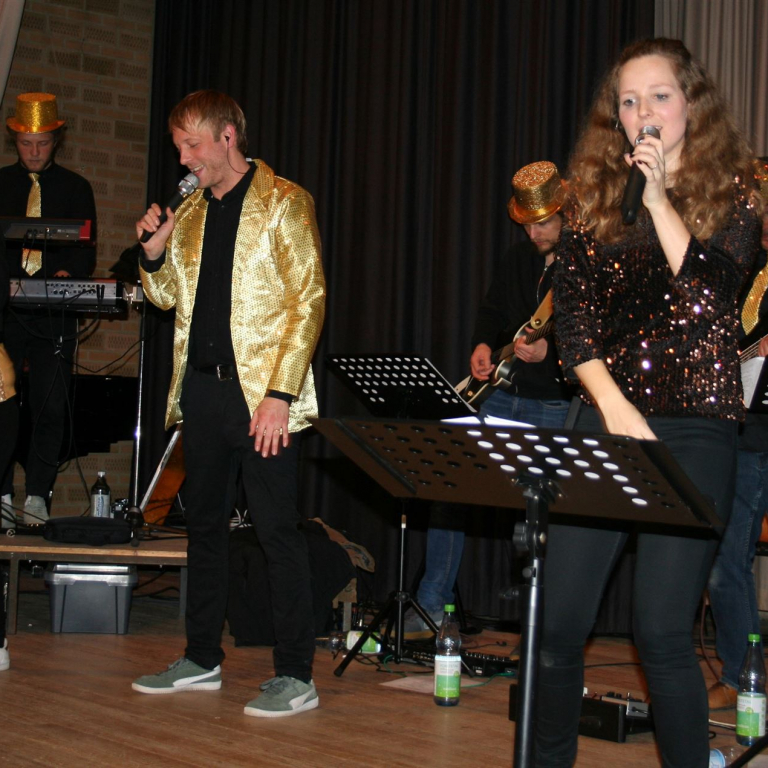 Anschließend sorgte in der Halle die Band CHAOSMEILE von und mit unserem Musiklehrer Herrn Mann am Schlagzeug für eine phantastische Stimmung. Fast zwei Stunden coverte die Band Klassiker aus den 90er Jahren.